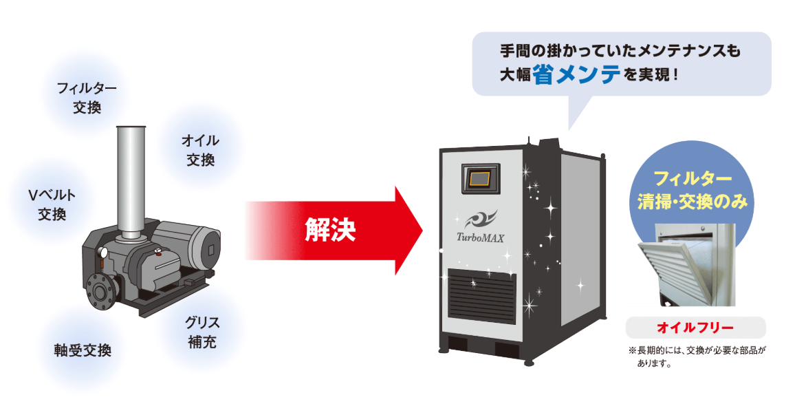 図1:空気軸受式ターボブロワTurboMAXの利点